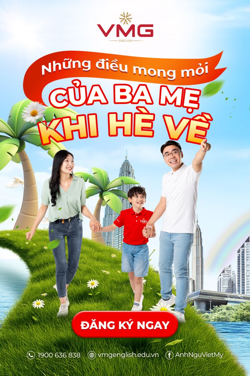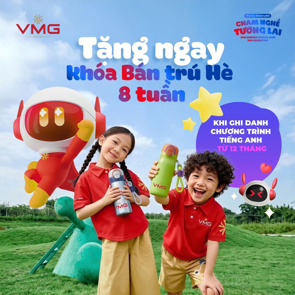 Ba mẹ ơi, VMG MANG ĐẾN một "cú hích" bùng nổ để con sở hữu mùa hè vừa bứt phá kỹ năng ngoại ngữ, vừa vui chơi cực đã mà lại tiết kiệm chi phí tối đa! CƠ HỘI VÀNG: ĐĂNG KÝ HỌC TIẾNG ANH – TẶNG NGAY KHÓA BÁN TRÚ HÈ Chỉ cần ghi danh lộ trình từ 12 tháng, con sẽ được tặng ngay 8 TUẦN BÁN TRÚ HÈ trị giá hơn 12.000.000đ ⚠️ Thời gian áp dụng: Từ 07/04/2026 – 01/05/2026 (Ưu tiên ba mẹ đăng ký sớm để giữ chỗ). Một mùa hè chất lượng không chỉ giúp con tiến bộ nhanh hơn, mà còn tạo nền tảng vững chắc cho cả năm học phía trước. Ba mẹ hãy inbox hoặc gọi Hotline để được tư vấn chi tiết khóa học nhé ạ!